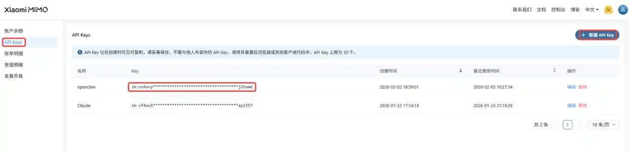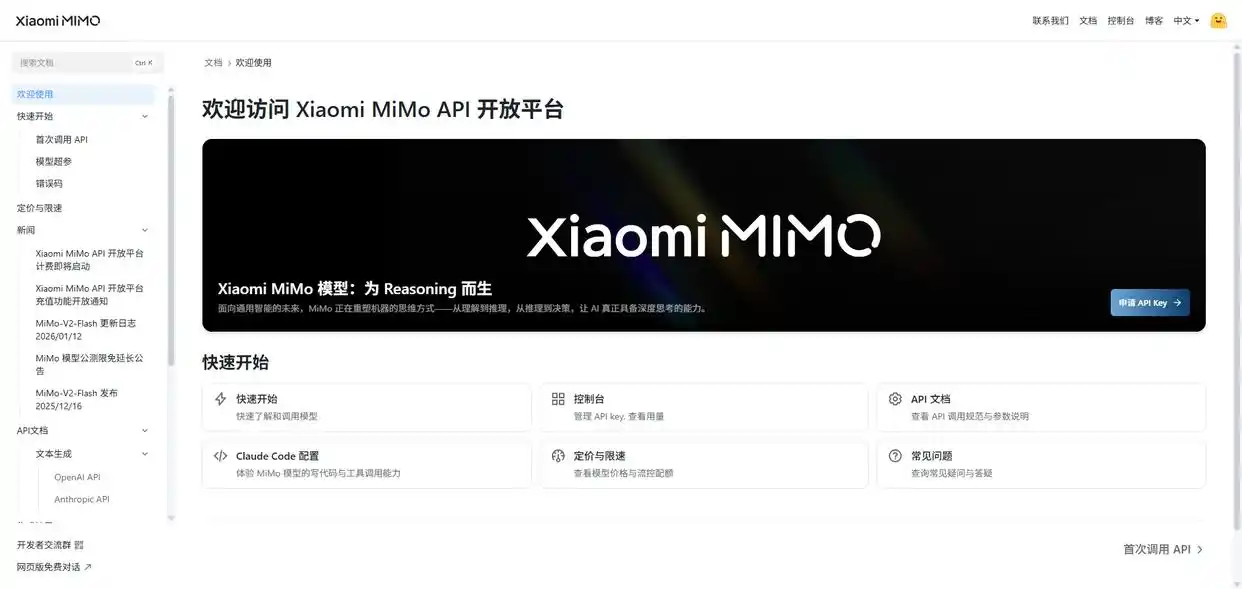 我选择了 小米 MiMo,目前仍然有免费试用额度,完全可以满足测试需求。