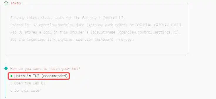 稍等几分钟,当界面弹出后点击 Hatch in TUI。