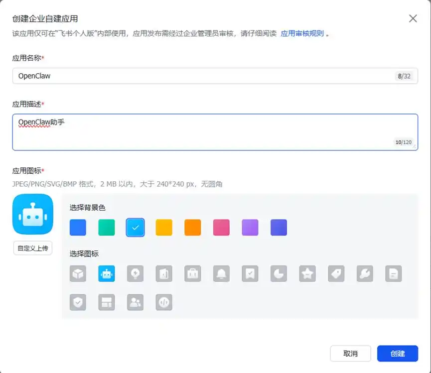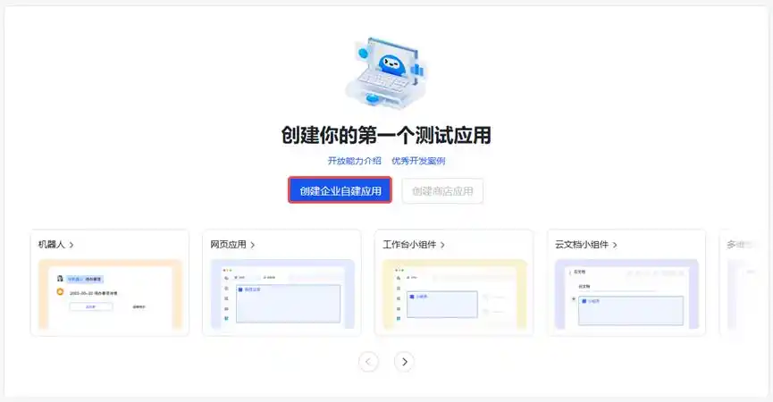 首先,前往飞书开发者平台,访问以下链接,登录后,点击 创建企业自建应用。