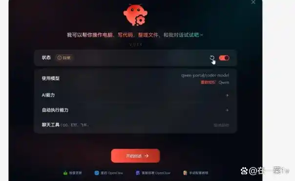 授权成功后,请返回奇游部署工具并刷新页面,等待本地状态显示为健康。当本地状态正常后,您可以点击开始对话,至此 OpenClaw 的本地部署便成功完成,您便可以正常使用它了。