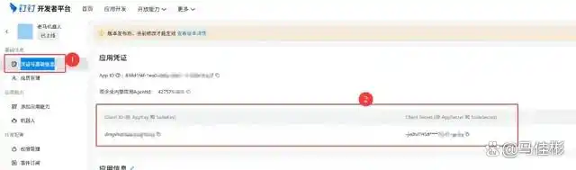 至此,机器人的基本设置已完成。接下来,我们需要获取 Client ID (AppKey) 和 Client Secret (AppSecret),同样在左侧菜单中找到“凭证与基础信息”,打开后即可看到,如图: