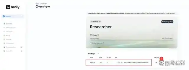 安装完成后,系统会提示您访问官网:https://tavily.com 申请 API Key,具体如下图:
