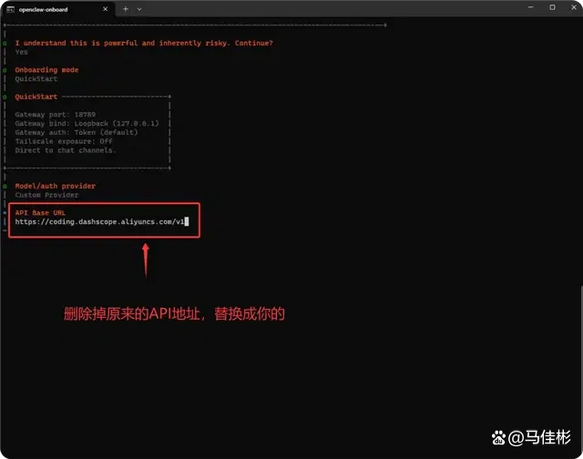 老马将以第一个 OpenAI 兼容协议的 API 地址为例,先复制此地址,然后返回命令提示符窗口,删除原先以 12XXXX 数字开头的 API Base URL。