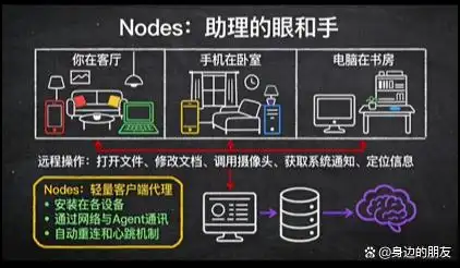 8)节点(Nodes):作为操作者的手和眼,能够跨设备发送指令,需在设备上安装。